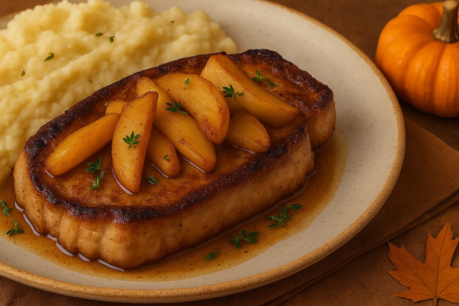 - Serve pork chops with the sautéed apple slices.