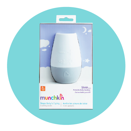 To help your grandchild drift off to dreamland, try the Munchkin Shhh Portable Sound and Light Soother. Its attractive design is completely neutral and won’t stand out on a dresser or bedside table at all (but you can also just put it away, if you’d like). It plays a shushing sound and white noise, and it includes a nightlight to make a sleep space feel calm and cozy.