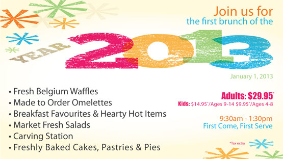 New Year's Day Brunch: January 1, 2013 | Advance reservations required at Deerhurst Resort